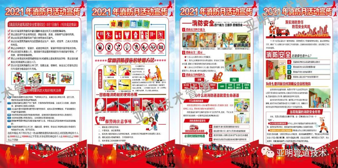 活动以“落实消防责任 防范安全风险”为主题。内容包括我国目前消防安全形式、消防器材的分类、使用方法、注意事项、逃生方法以及防火的相关法律规定等。