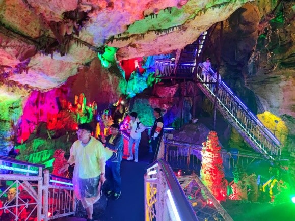 午餐后,团建活动的第二站“禹王洞”。禹王洞是"华北第一大溶洞",相传四千年前,大禹治水沿汾河泛舟北上时,曾系舟于此,系舟山由此而得名。禹王洞洞口海拔1768米,洞内常年恒温8―11℃,是一天然石灰岩溶洞。洞内景观千姿百态,绚丽多姿,令人流连忘返。